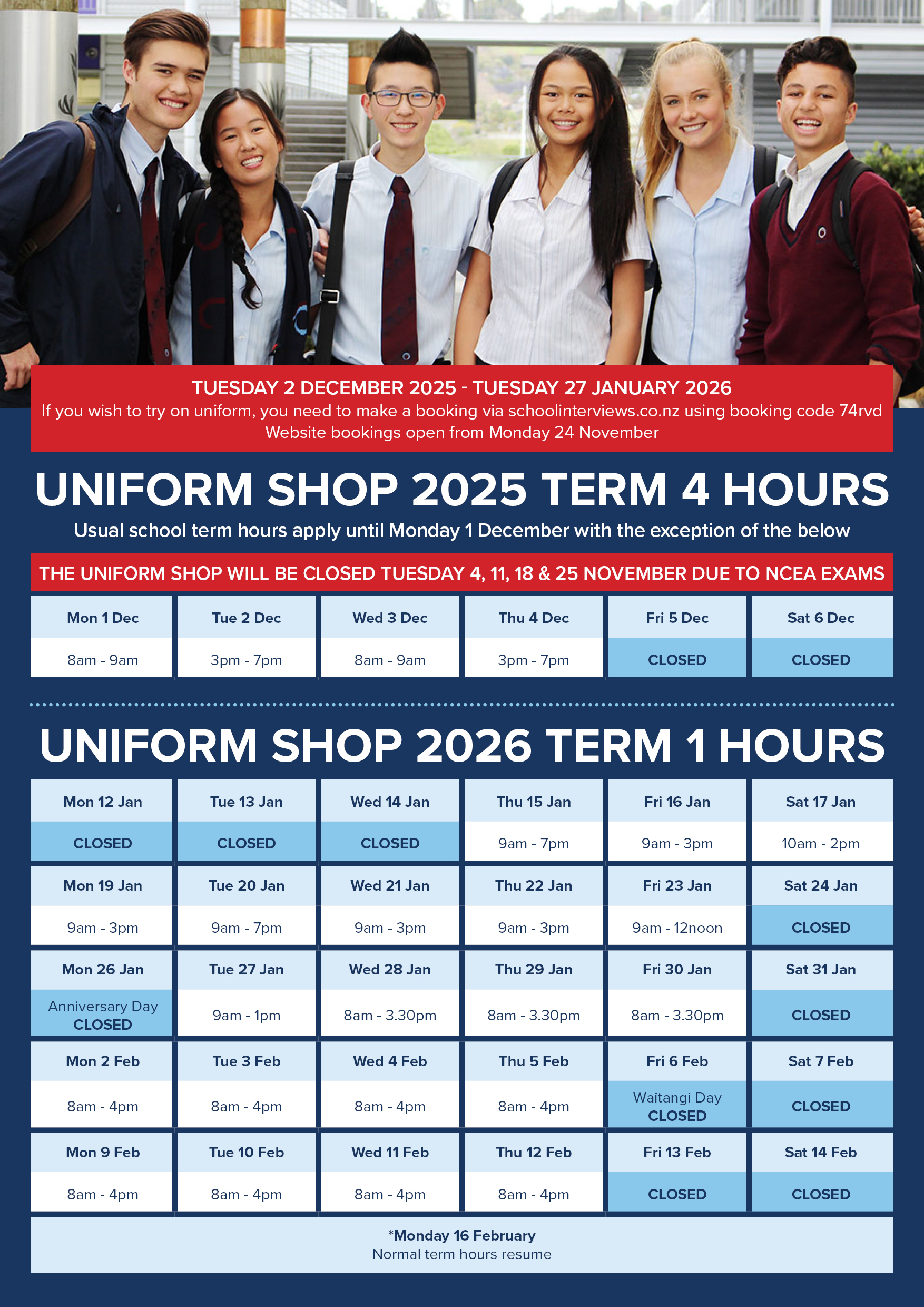 #Zip Pay in 4 is available to approved applicants only and subject to completion of satisfactory credit checks. For more information visit myschool.co.nz/zip. T&Cs and late fees apply. Zip Co NZ Finance Limited FSP 598969.
