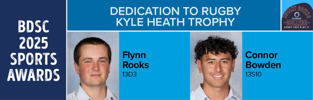 Dedication to Rugby – Kyle Heath Memorial Trophy: Flynn Rooks 13D3, Connor Bowden 13S10